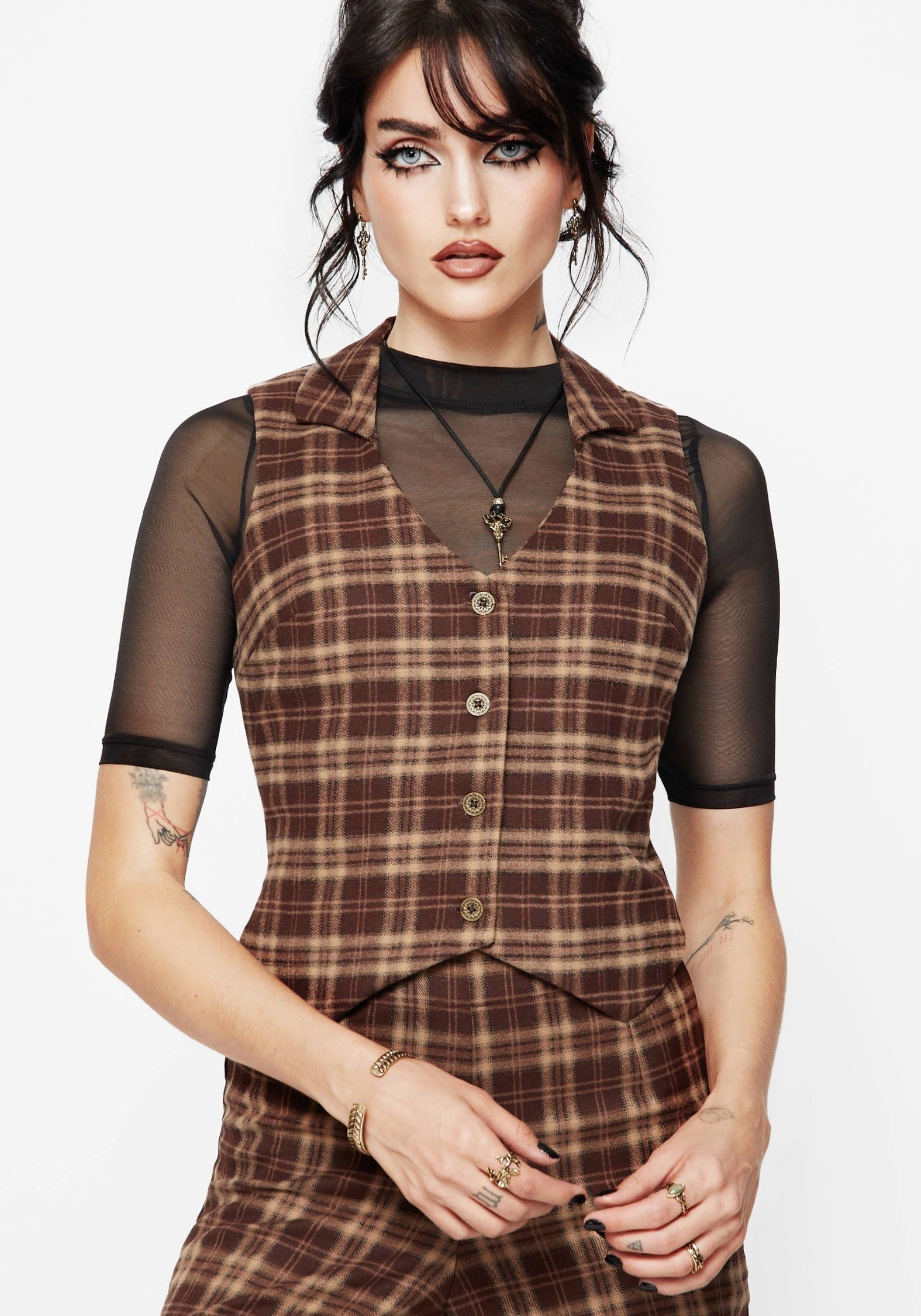 - Brown Check Cropped Waistcoat